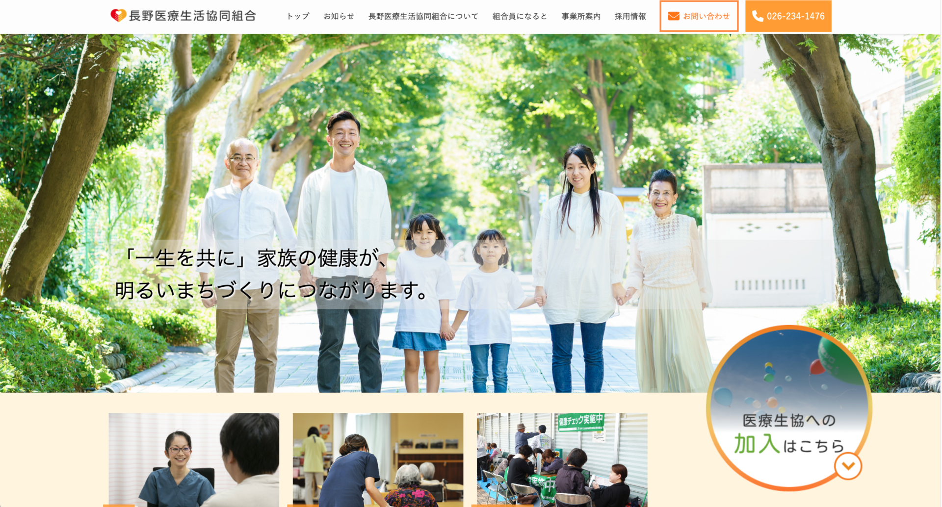 長野医療生活協同組合様は長野県長野市を拠点に、安全、安心、質の高い医療と介護サービスを通じて地域の健康づくりに貢献。地元地域の医療を支えながら、健康づくり・まちづくりの活動を通して“地域まるごと健康づくり”を目指して活動されています。