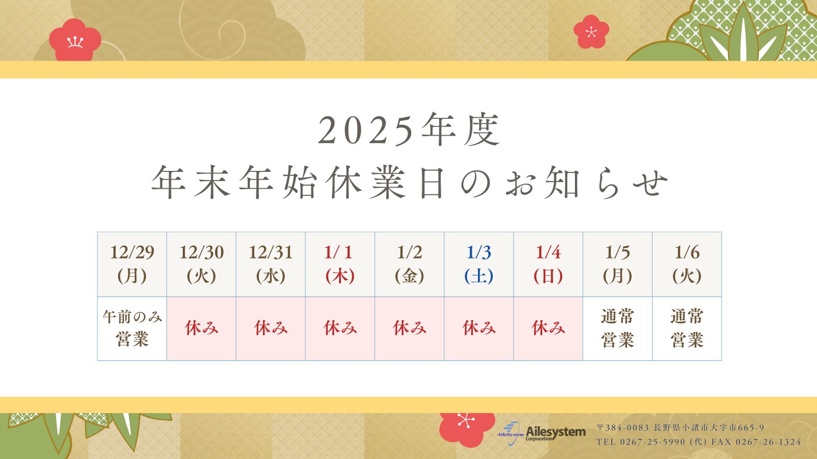 さて、弊社では年末年始休業を下記の通り実施させていただきます。