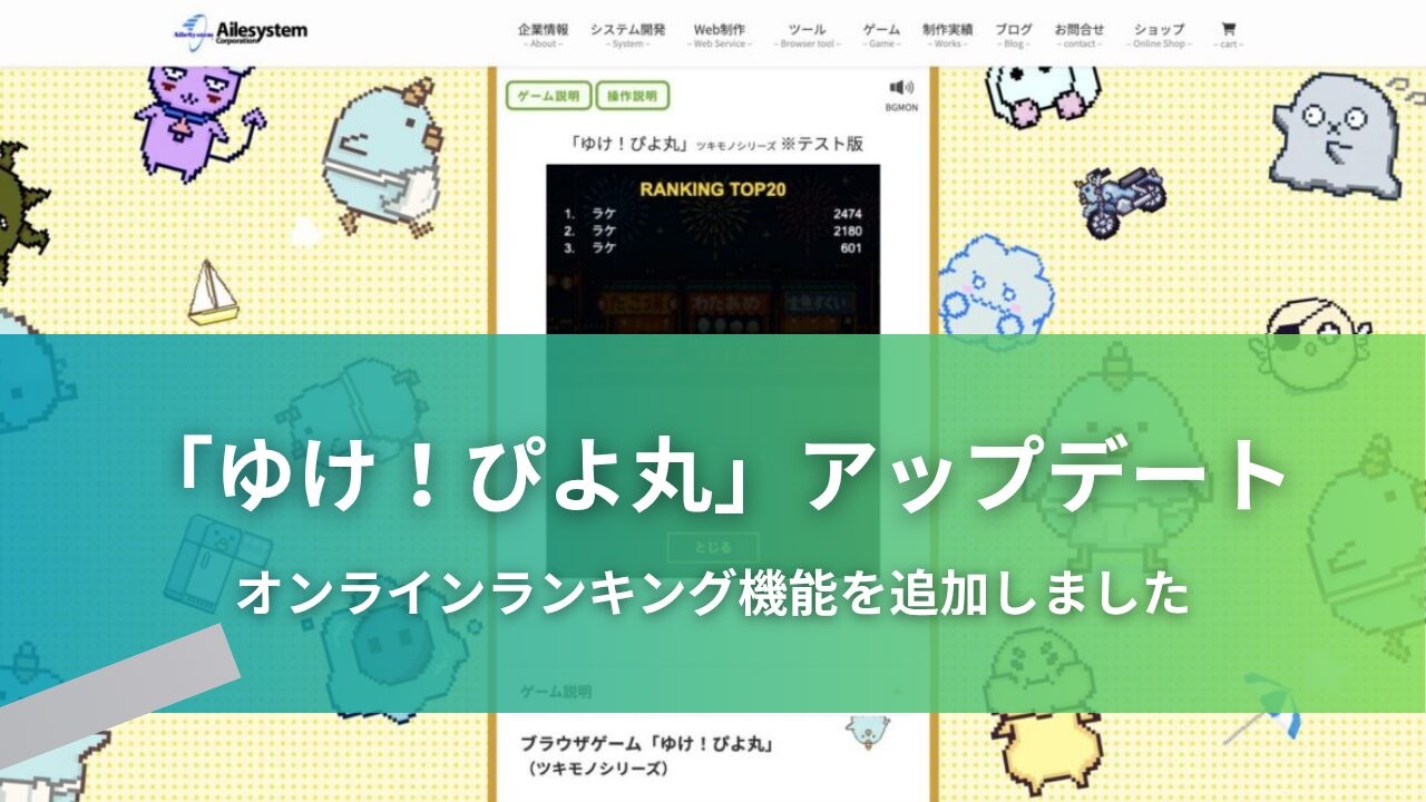 ブラウザゲーム「ゆけ!ぴよ丸」をアップデートしました。今回は、みんなのスコアが見えるオンラインランキング機能を追加しました。